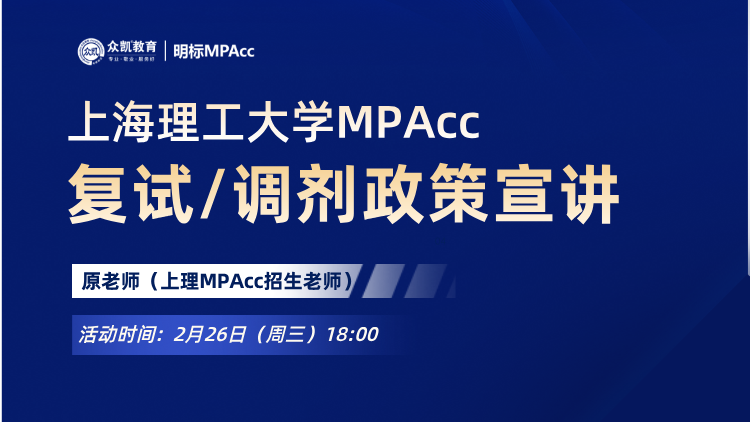 宣讲嘉宾:原老师(上理MPAcc招生老师) 分享时间:2月26日(周三)18:00
