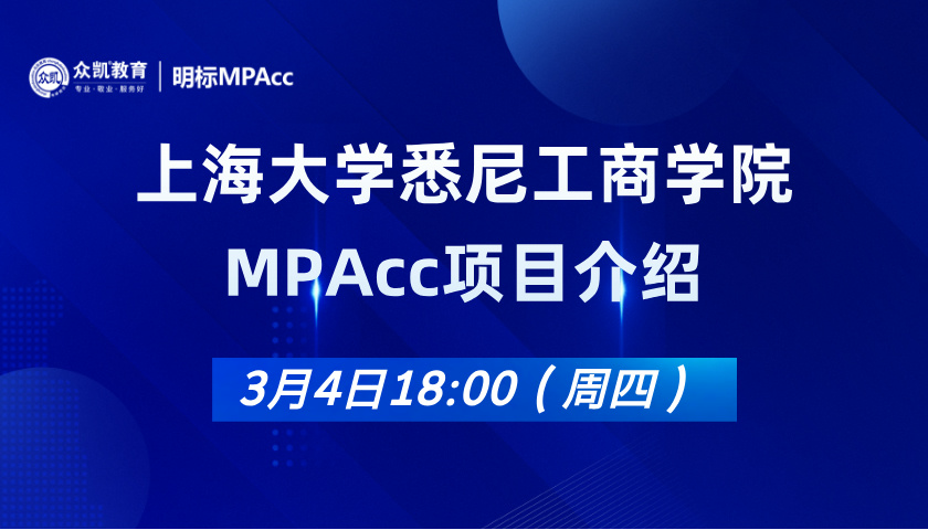 3月4日18:00丨上海大学悉尼工商学院MPAcc项目介绍