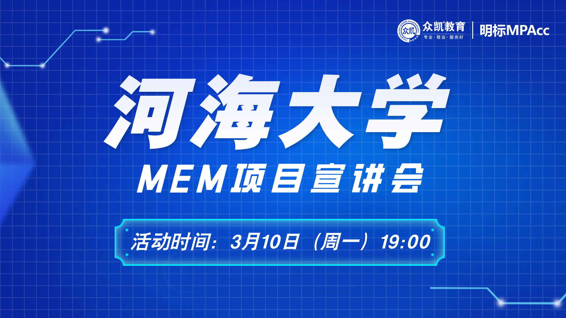 宣讲嘉宾:王老师(河海MEM教育中心招生老师) 活动时间:3月10日19:00